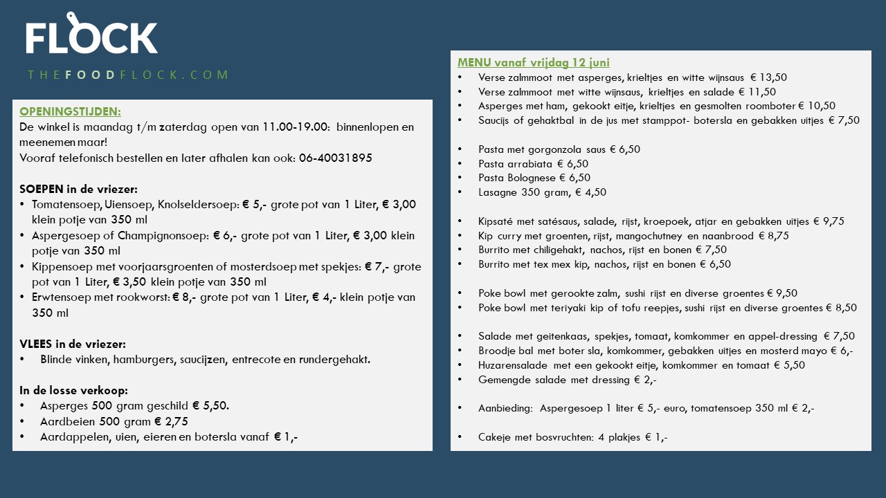 Vanaf 30 december 2020 testen we in onze “pop-up store” in Oudenbosch het concept van de maaltijdwinkel FLOCK.